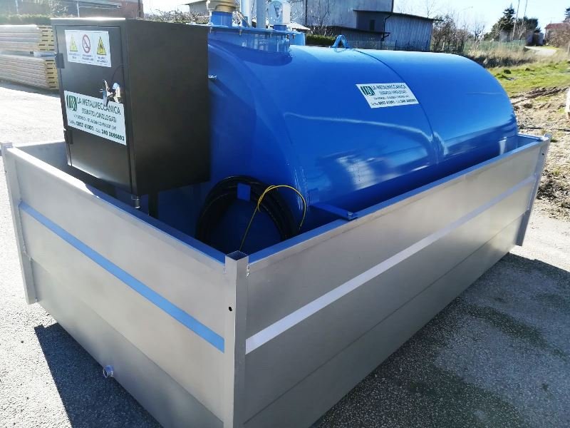 Erogatore mobile omologato dal Ministero Degli Interni, approvazione n. DCPST/A7/7833/AT/09310, per lo stoccaggio del gasolio, costruito in lamiera di acciaio al carbonio con spessore 30/10 mm, trattato esternamente con antiruggine e finitura con smalto Blue di elevata qualità RAL5015